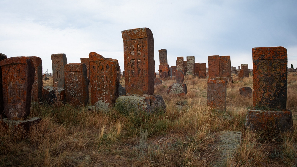 Zwischen den beiden Trekkingtouren entspannen wir am tiefblauen Sewansee, dem größten See des Kaukasus auf 1.900 Metern Höhe. Wir baden in seinen kühlen Fluten, erkunden mittelalterliche Klöster und bestaunen auf dem Friedhof von Noratus kunstvoll behauene Kreuzsteine aus dem Mittelalter.
