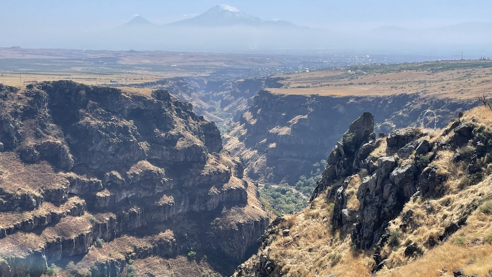 Die Reise endet am Kloster Chor Wirap, wo der schneebedeckte Ararat zum Greifen nah scheint – getrennt nur durch die türkische Grenze, ein stummer Zeuge armenischer Geschichte.
